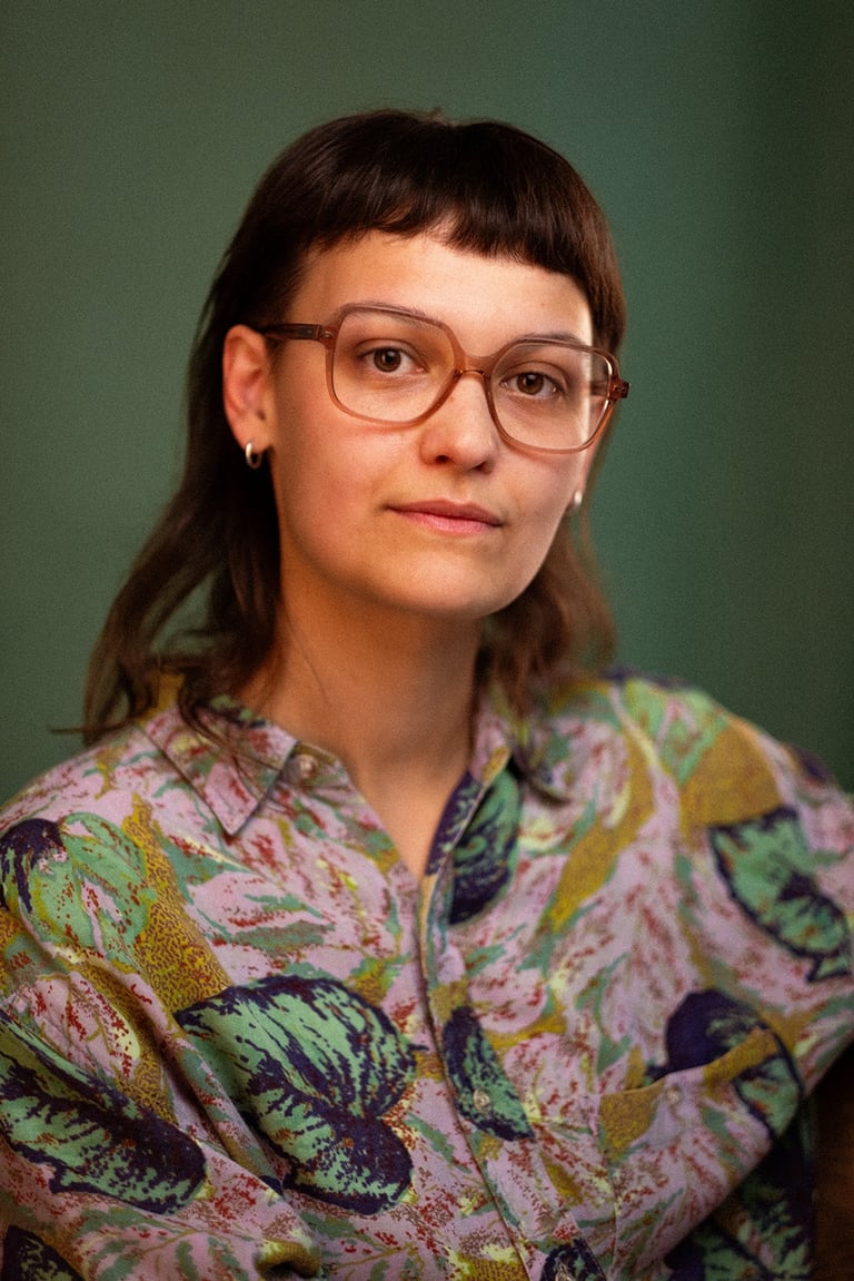 She works mostly around the themes of science fiction and futurisms: in the face of climate crisis, genocide and fascism rising to power, she adopts a hope punk approach by wishing into existence alternative ways to be human. She uses storytelling through costumes to produce a cognitive estrangement, either by building upon the body until humanity is completely erased, or by twisting reality just enough to become ridiculous and uncanny. Costume is also the cradle of role-play which she uses for speculative and immersive experiences for performers, audience members and herself.